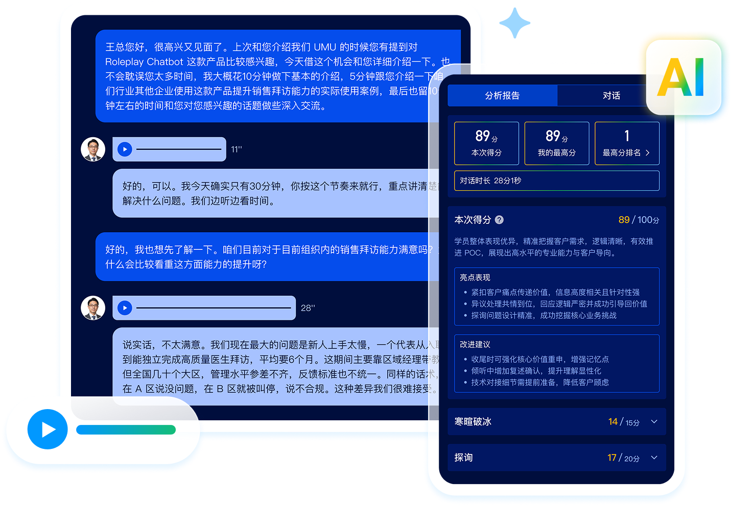 AI 沉浸式模拟对练,还原真实销售拜访场景,批量复制销冠能力