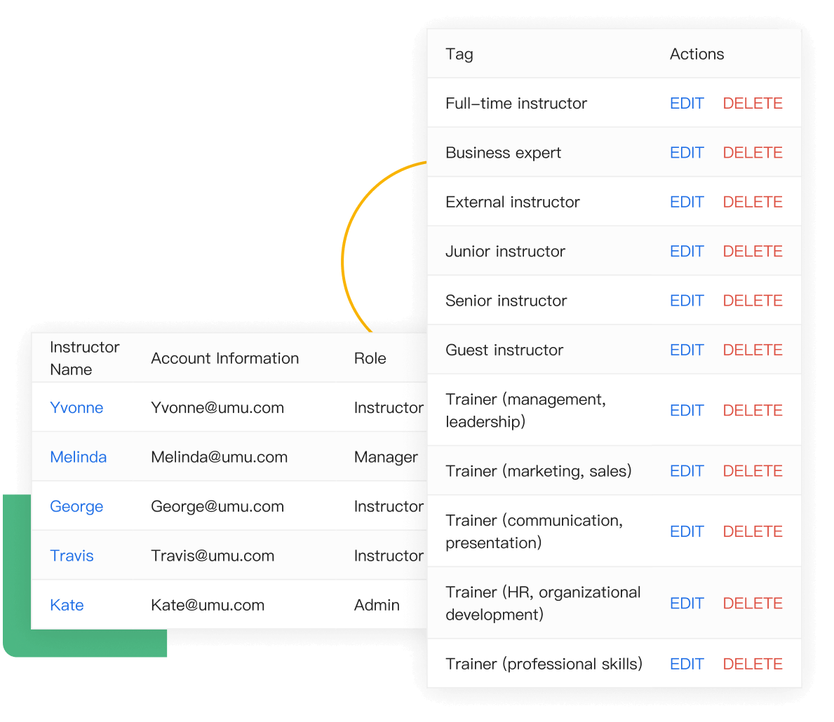 Customize instructor levels (“junior”, “intermediate”, “senior”) and categories (“in-house”, “expert”, “external”) to incentivize each instructor to grow in their respective field of expertise.