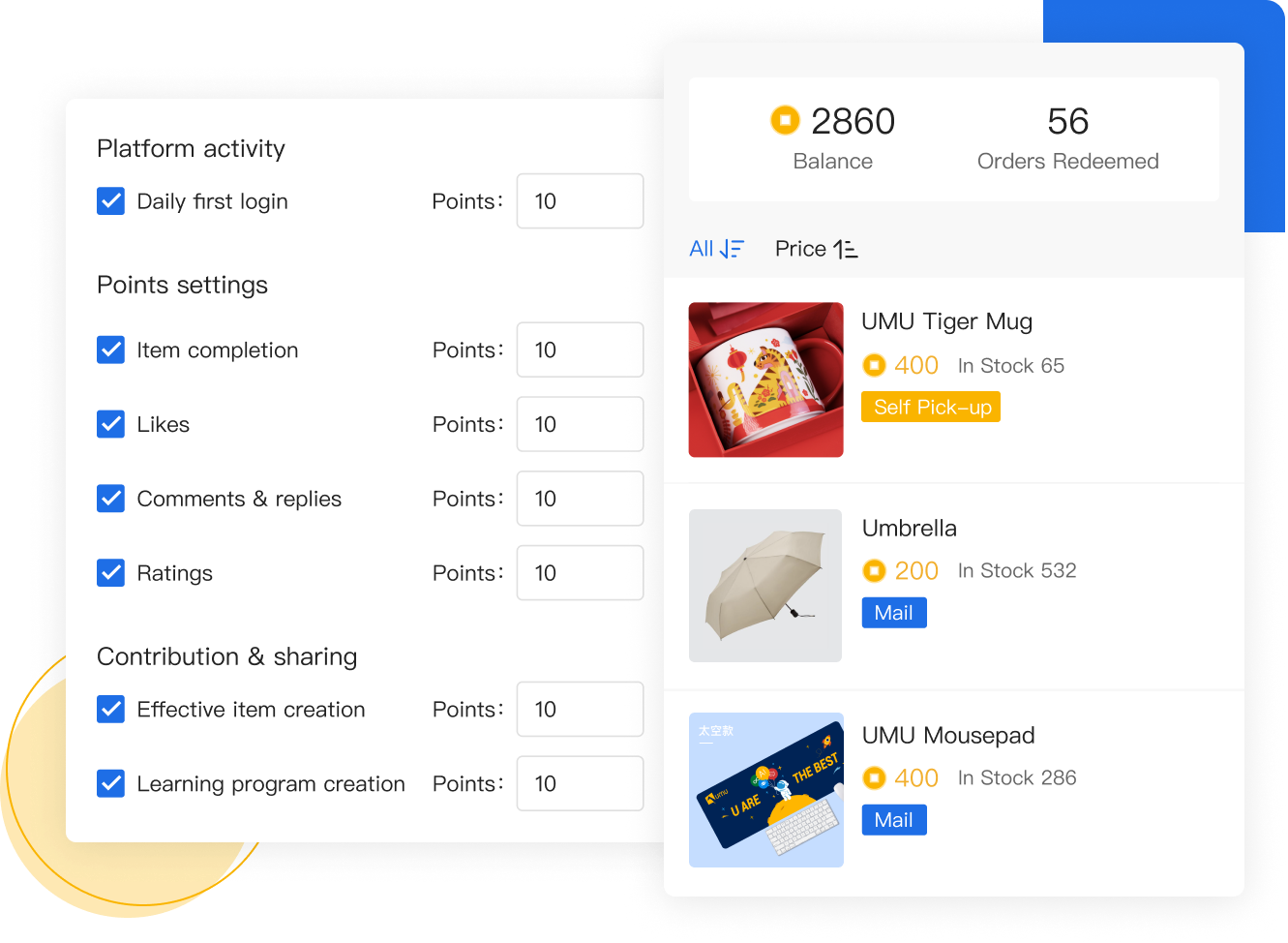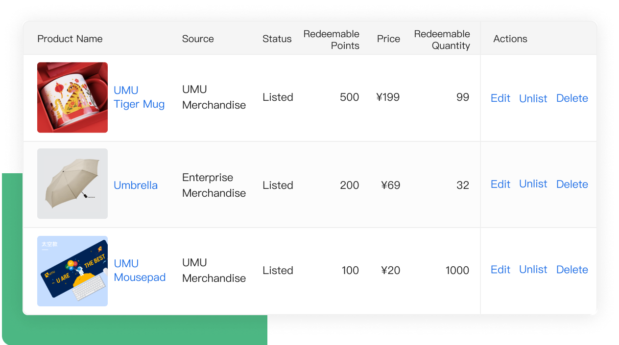 Import your enterprise’s employees' existing UMU Points (UP) in bulk to maintain learning momentum. Set redemption rules based on points, inventory allocation and management goals.